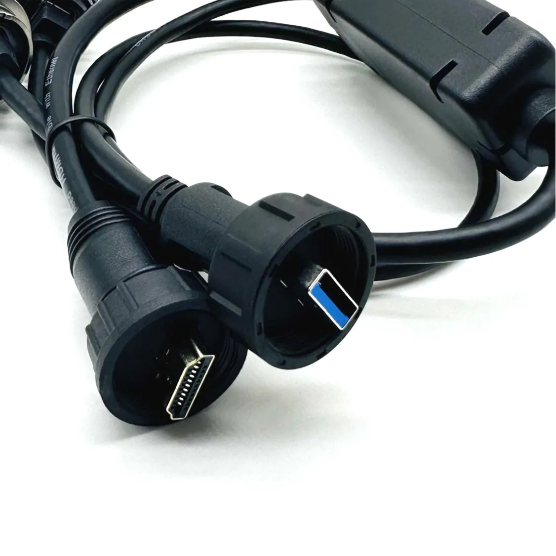 Connector 2: HDMI 2.0 Male (PVC molding + IP67 nut) for plug-and-play compatibility.