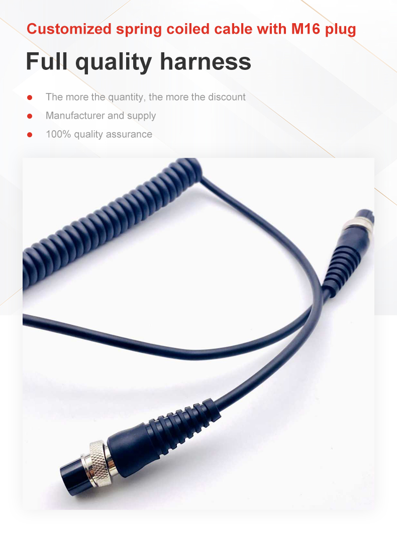 Customized spring coiled Cable with M16 plug
